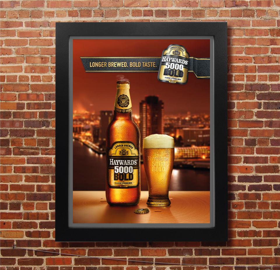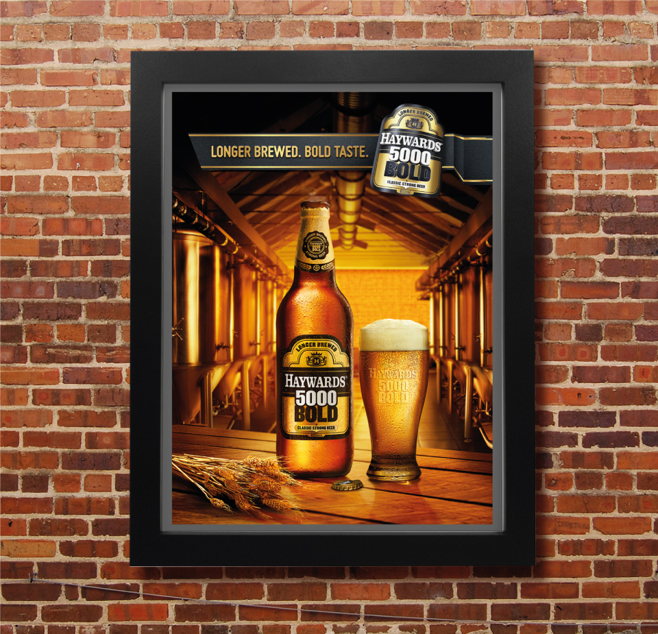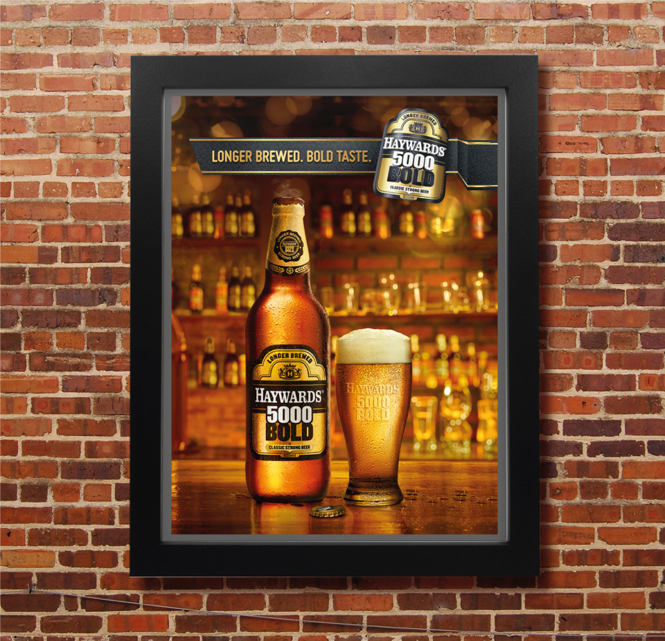 The launch of the Haywards 5000 Bold, a premium sub brand, was captured through the shot of a upscale bar as the background and some scintillating lighting doing the rest.
